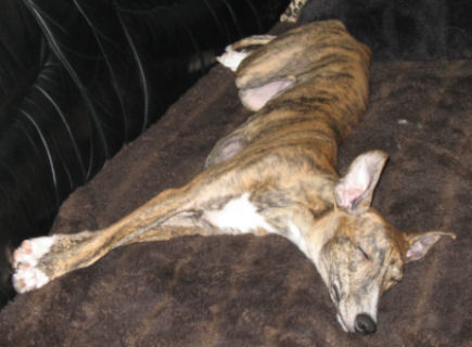Amigo ist ein dunkelgestromter Rüde, der am 20.7.2005 geboren und etwas klein geraten ist, er wird nicht größer als ein großer Whippet werden. Er sucht ein liebevolles Plätzchen mit wenigstens einem Hundekumpel, sie werden an den Fotos sehen warum. Kinder- und Katzenverträglich. Nachts schläft er gerne am Kopfpolster, entweder hat er die Nase oder die Pfote im Gesicht der Pflegemama, damit sie niemand stehlen kann. Er ist ein lustiger kleiner Kerl, der gerne zu einem Späßchen aufgelegt ist und am liebsten ein Gläschen Himbeersaft stiehlt.