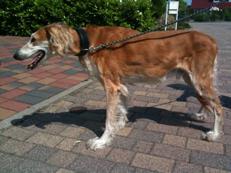 Denn am Donnerstag erreichte uns ein Anruf einer Nachbarin eines sehr alten Saluki-Besitzers, der ins Krankenhaus mußte. Der 12 Jahre alte Saluki-Rüde war von der Tierrettung ins Tierheim gebracht worden.