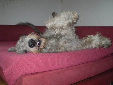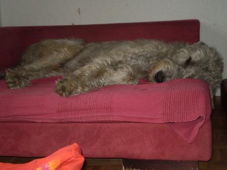 Zwischenzeitlich hat er standesgemäß - wie es sich für ein Wölfchen gehört - auch den Weg aufs Sofa gefunden und findet es nun mal so richtig gut. Mit seinen Kumpels wird nun auch gespielt und getobt, was von ihm immer lautstark mitgeteilt wird. Von der vierbeinigen Frauenwelt ist er sehr entzückt und kann noch gar nicht so ganz verstehen, dass dort nicht immer alles erwünscht wird, wie er es sich so vorstellt."