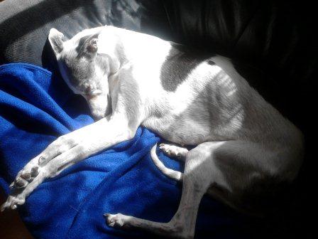 Gestern ist Möpsi umgezogen. Die kleine Whippetmaus hat sich sofort auf dem Schoß von Joshua (Sohnemann der neuen Besitzerin) niedergelassen und ausgiebig geschnarcht - wenn das kein gutes Omen ist. Alle sind begeistert von der Kleinen, die heute Nacht schon fest ans neue Mami gekuschelt unter der Bettdecke verbracht hat.