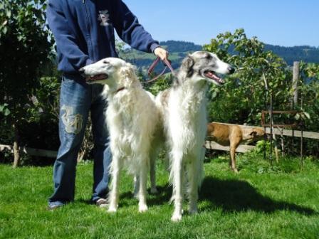 Sein Barsoifreund Karlo freut sich über die Verstärkung.