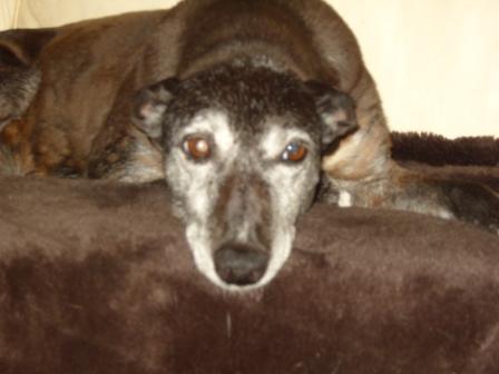 Ihre Grey-Hündin Carusha (vermittelt Juli 2009) sei an Pfingsten gestorben - im Alter von 14 Jahren.
