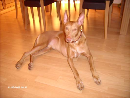 Einige Tage später hatten wir einen Anruf auf unserer Telefonliste und riefen zurück. Ein Windhundmensch suchte einen älteren Kameraden für seinen vorhandenen Windhundmischling. Gemeinsam gingen wir alle unseren älteren Kandidaten durch und nebenbei erwähnte der Interessent, er habe schon einen Galgo und... einen Pharaohound in der Vergangenheit gehabt. Manchmal fällt einem dann ja dann "ausnahmsweise" die richtige Info ein: "Es sucht auch ein Pharaohound ein Zuhause." In Ermangelung weiterer Infos (die wir leider noch nicht eingeholt hatten), gaben wir die Nummer des Zuchtkommissionsmitglieds der Rasse Pharaohound weiter - ein Bekannter aus alten Zeiten für unseren Interessenten. Dann wurde die ganze Sache ein Selbstläufer. Termine wurden ausgemacht, Pharaohound eingepackt und uns eine Email geschickt.