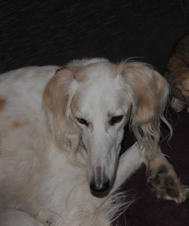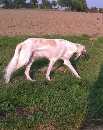 Er lebt nun in wunderbarer Saluki-Gesellschaft.