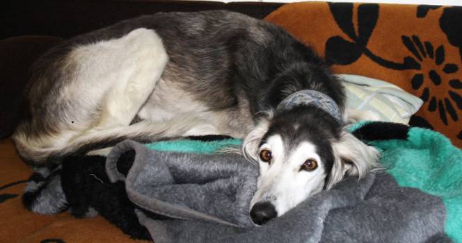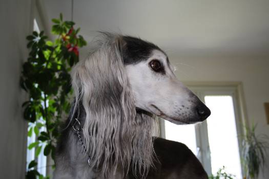 Fips,ein 9 Jahre alter Saluki-Rüde in grau-grizzle, sucht eine neue Familie.