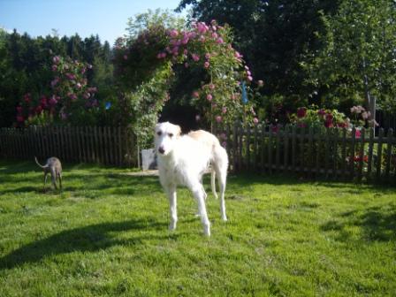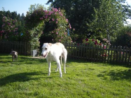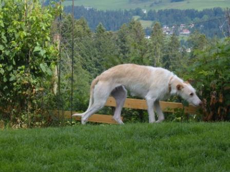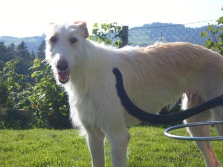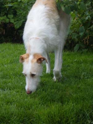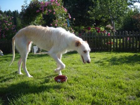 Sobald man Pauline von der Leine macht, rast sie auf und davon - nur um große Kreise um einen herum zu ziehen, dabei immer rasend. Dieser Hund kann nicht normal spazieren gehen, schnüffeln oder so... Fehlanzeige. Der Spaziergang wird zur Rennbahn, Zufall, wenn sie da mal ein Häufchen macht, sie hat keine Zeit, MUSS rennen. Eine wahre Freude, ihr dabei zuzusehen!!