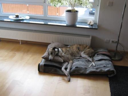 Der schöne Grey kam im Juli 2009 zu uns und zog im Februar 2010 bei Karin und Thomas als erster Hund ihres Lebens ein - die beiden hatten uns schon öfters gefragt, besassen damals aber etliche Katzen, die keine Hunde kannten.