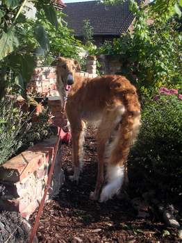 "Der große Käsedieb, der Apfel- und Johannisbeerenvernichter, der Clown, der Seelentröster, der große, verlässliche Kumpel, der sanfte Freund, der Ranschmeißer, der einen vor Freude fast umgeworfen hat, der große Kuschler, der, der so gerne verreist ist, unsere Urlaube genossen hat, ist in seinem letzten Urlaub an der Müritz zur allerletzten Reise aufgebrochen... noch mal in den Garten gehen, die Nachbarhunde verbellen... und dann kam der letzte Anfall. Seine Welt geriet aus den Fugen und er fand sich nicht mehr zurecht. Seinen letzten Wunsch, ihn gehen zu lassen, habe ich ihm schnell erfüllt. So ging am 8.06.2017 mein Traumbarsoi, den ich fast 10 Jahre lang begleiten durfte. Seine Kumpels und ich vermissen ihn unendlich und er fehlt so sehr ..."