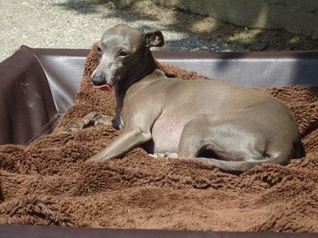 Diva lebt nun mit zwei netten Windspielbuben, die der kleinen Lady sofort Platz auf ihrem geliebten Küchensofa gemacht haben;-)