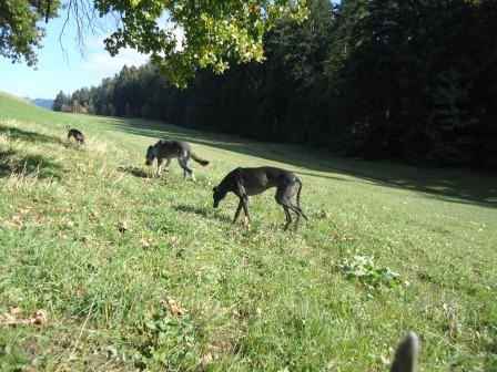 Buschka ist ein friedliebender, sehr sensibler Riese. Angeleint läuft er wie die meisten Greyhounds mit durchhängender Leine spazieren. Abgeleint haben wir ihn bisher noch nicht, weil er draußen noch ziemlich unsicher ist.