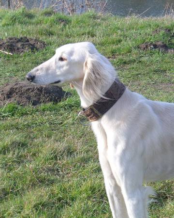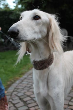Seine Pflegemama hat ihn mittlerweile gut sozialisiert, so daß er alles kennt und weiß, was ein Saluki braucht.