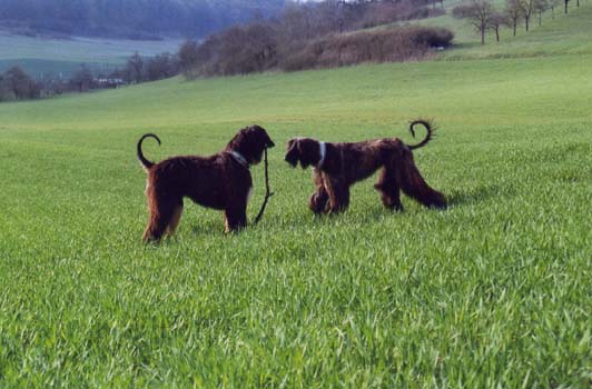 Die Familie von dem Afghanen Minou hat uns tolle Bilder geschickt, die wir Ihnen natürlich nicht vorenthalten wollen. Minou lebt bei einer großen Familie mit einem weiteren Afghanen-Rüden zusammen. Sie sind unzertrennliche Freunde geworden, die jeden Tag gemeinsam den Freilauf genießen auf dem Spaziergang - unser Minou hört nämlich so gut, daß er seinen Freund damit angesteckt hat.