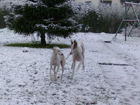 Wir haben Bilder von Lenny erhalten, zwar etwas unscharf, aber man kann erkennen, dass er sich in seinem neuen Zuhause mit seiner Galga-Freundin ziemlich wohl fühlt. Vielen Dank und bitte zwei Kauknochen für die Fotomodelle.