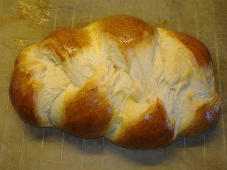 ... und so der Hefezopf, als er 10 Minuten (!) nach Abfahrt von Gigi und Frauchen aus dem Ofen kam... man hat es halt eilig, wenn man mit seinem neuen Hund nach Hause möchte;-)