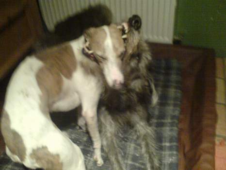 Bereits am Dienstag wurden unsere beiden Whippetbuben Zeus und Apollo abgeholt. Sie fühlen sich schon richtig Daheim in der neuen Umgebung, lümmeln auf dem Sofa, rasen mit ihrem neuen Whippetkollegen um die Wette, ärgern die beiden Jack-Russells, jagen die Katzen und halten ehrfürchtig Abstand von den Pferden. Nachts wird natürlich im Bett von Herrchen und Frauchen Wärmflasche gespielt.