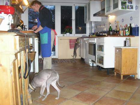 hier kocht der Chef und die Windspiele sind noch brav...