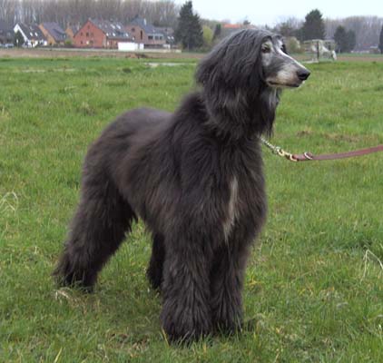 Katya, fast 12 Jahre alt und blau. Sie hat mehrere Gesäugetumore und sehr schlechte Zähne. D.h. wir müssen sie nun erst einmal dem Tierarzt vorstellen, Zähne sanieren und Teile der Milchleiste entfernen lassen (unserer Einschätzung nach, sind die Tumore noch operabel). Da die alte Dame also noch einige Strapazen vor sich hat, haben wir uns entschlossen, daß sie bei Anita und Peter leben darf (dort wohnte bereits unser Patenafghane Victor) und wir Paten suchen, die uns bei den erheblichen Tierarztkosten unterstützen. Unseres Erachtens würde es keinen Sinn für Katya machen, nach der Operation wieder umziehen zu müssen. Denn besonders das Gesundpflegen eines kranken Tieres schafft eine außerordentliche Bindung zwischen Mensch und Tier; und ein weiterer Umzug in diesem doch schon recht hohen Alter ist dann nicht vertretbar.