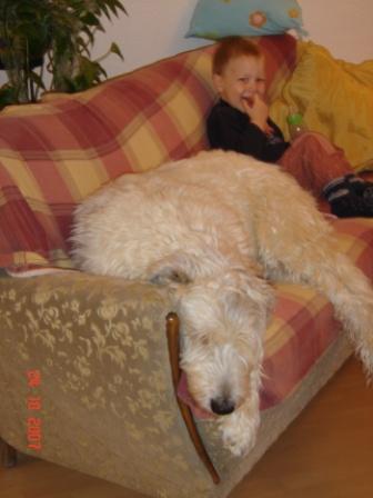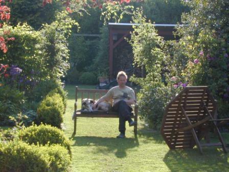 ... das ist Gigi und sein Herrchen, das völlig erschöpft vom Rasenmähen auf der Bank eingeschlafen ist;-)