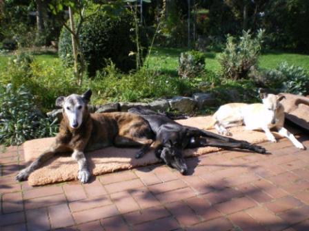 ...mit ihren Freunden, u.a. unsere Sophie, die einst aus demselben Tierheim kam wie aktuell unsere Adriana, bevor sie ins TH nach Deutschland wechselte.