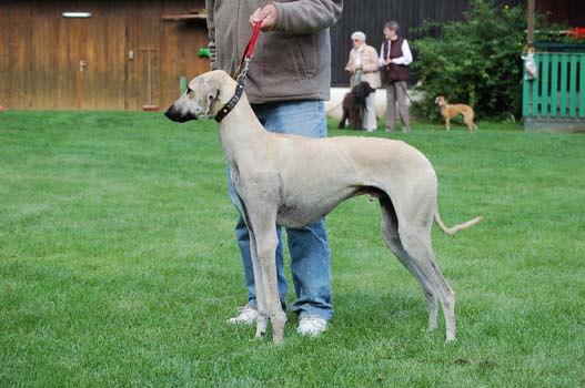 Darif hat sich sehr früh bei einem Unfall das linke Vorderbein drei Mal gebrochen, Carpalgelenk zertrümmert und alle Bänder ab. In der Folgezeit wurde das Bein vier Mal operiert, doch als er zu uns kam war das Bein immer noch stark lädiert und eigentlich nicht schmerzfrei einsetzbar. Mit Hilfe Darifs Züchters fanden wir einen Tierarzt, der sein Handwerk verstand und das Beinchen nahezu in seine ursprüngliche Form versetzte. Nach der Operation griff uns unsere Conny unter die Arme und pflegte den Buben so lange bis die Wunde verheilt war (eine sehr große Erleichterung, da unsere Pflegestellen zumeist mehrere Hunde besitzen/pflegen und es recht schwierig ist einen Hund mehr oder weniger ruhig zu halten - vielen herzlichen Dank). Die folgenden vier Wochen war noch Schonzeit angesagt und dann konnte Darif wieder langsam anfangen auf allen vier Beinchen durch die Gegend zu springen. Die letzten zwei Monate durfte er zum ersten Mal in seinem Leben nach Herzenslust toben und spielen.