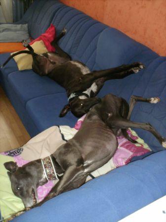 Seine Greyfreundin Sagaro und Afghanenfreundin Salome liebt er über alles, wohin die Mädels gehen - geht Flynni mit. Auch an den Straßenverkehr hat er sich schon schön gewöhnt. Auf der Spielwiesen gibt es sehr viele Freunde, darunter auch ein schwarzer Greyrüde mit dem versteht er sich