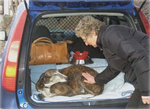 Sie reiste heute ins ferne Schweden um mit Herrchen, Frauchen und ein paar Whippets ihr Leben zu verbringen. Ihre Menschen haben den ganzen Tag Zeit, Haus und Garten - kurz es ist alles pefekt.