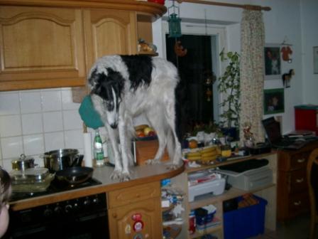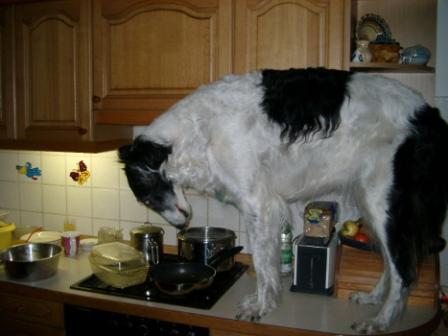 Liebe Andrea, also nicht nur Peter ist so geartet.... auch Dunja, die wir schon seit etlichen Jahren vermittelt haben, guckt gern in Töpfe! Ihr Frauchen Claudia schreibt: "Hier die Antwort aus Kulmbach: was Peter kann, kann Dunja schon lang...."
