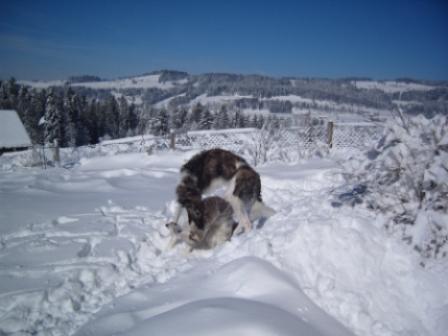 Einen sonnigen guten Morgen! Gute-Laune-Fotos von unserer Pflegestelle am Bodensee... (jetzt gute-Laune... das war kein Spass, den Hunden täglich einen Weg durch die Schneemassen zu schaufeln;-)