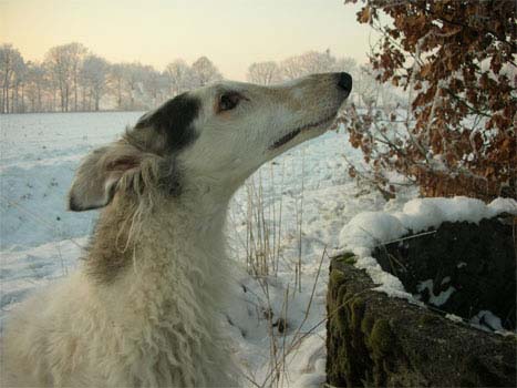 Die kleine Gucci, einst ein völlig verhungertes und verwurmtes Barsoi-Baby, um dessen Überleben wir bangten(vermittelt Oktober 2005), stellt sich uns heute als Barsoi-Dame vor.