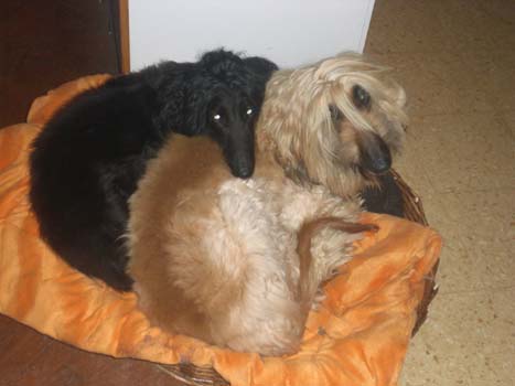Hier endlich ein Bild unserer zwei Neuankömmlinge vom letzten Wochenende: Püppi (5 Jahre, Hündin, schwarz) und Ranschi (4 J., Rüde, gold). Diesen zwei kann man doch gar nicht widerstehen ....oder?