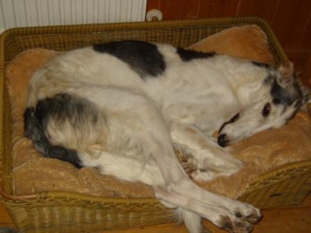 Und so sieht ein Grinsebarsoi aus, leider mit Zeitverzögerung der Digicam, aber ein gaaanz frisches Bild von heute Mittag!