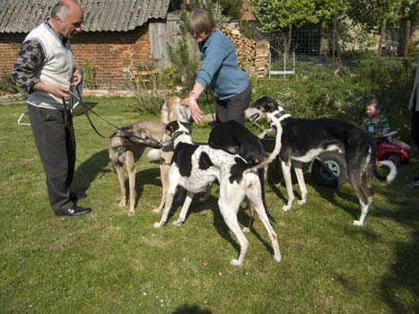 In Bersteland kam ganz unerwartet lieber Besuch aus Holland, Carla mit Mann, vier Chart Polskis und einer Barsoi-Hündin. Letztere ist unsere Anabela (vermittelt April 2008), die sich unter der guten Pflege zu einem prächtigen Barsoi-Mädchen entwickelt hat. Auch die wildfarbene CP ist ein ehemaliger iWi-Schützling (vermittelt Juli 2008) - auch Solka ist jetzt ausgewachsen sehr hübsch geworden.