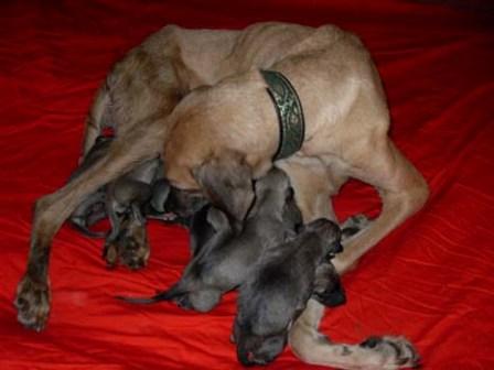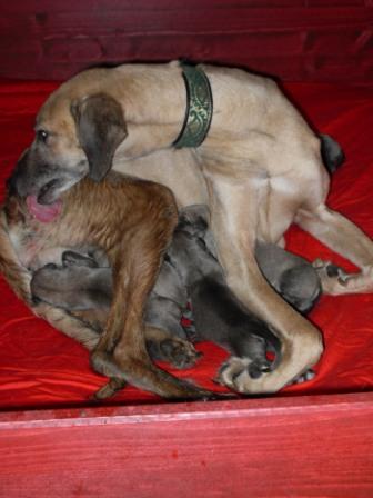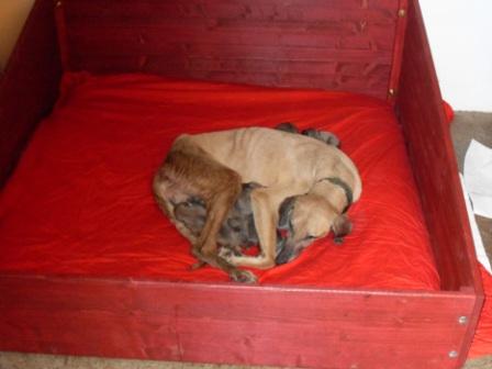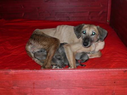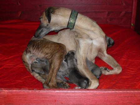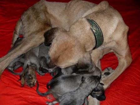 Und hier, Mama Alice und der A-Wurf von der Windhundhilfe.
