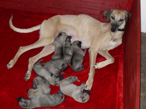 Man sieht, daß sie alle gut zugenommen haben und sich sloughiwohl fühlen.