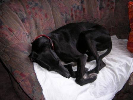 Er läßt auch alle Pflegeaktionen geduldig geschehen; heute konnte ich ihm auf einer Seite sogar einen Teil vom Zahnstein entfernen. Die Liegeschwielen und alle sonstigen "lädierten" Stellen werden mit Arnika-Vaseline behandelt und sehen inzwischen schon viel besser aus.