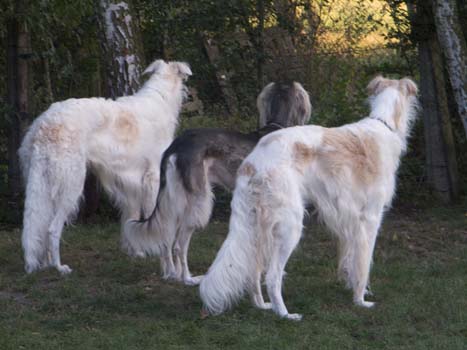 Wunderschöne Fotos haben wir von unseren zwei Barsois Ronny (vermittelt August 2004) und Mischa (vermittelt April 2005)bekommen. In der Mitte sieht man Saluki-Rüde Sam (vermittelt März 2005). Herzlichen Dank!
