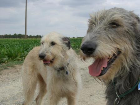 "viele Grüße aus dem Norden von Hans-Heinrich und Anhang. Unser Seelenwolf feiert heute seinen 7 Geburtstag. Morgens gab es eine Schlammparty, wilde Toberei mit Abby im Matschfeld. Als die Wölfe dann satt und trocken auf dem Sofa lagen durfte Frauchen, zur Freude der wenigen Spaziergänger, bei Sturm und Regen auf dem Feld herumtappen und HH´s Halsband suchen. Wir freuen uns so sehr über jeden "wilden" Tag.
