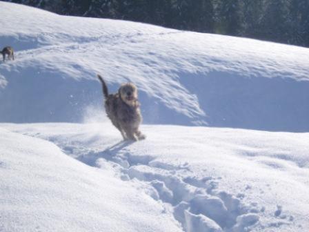 Blümchen ist eine relativ kleine Hündin, sehr lustig und trotz ihres Herzleidens ziemlich aktiv - wie man an den neuen Fotos auch gut erkennen kann.