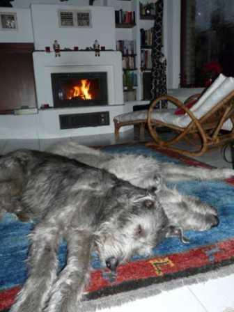 Mir geht es hier echt gut! Kuscheln am Kamin, Waldspaziergänge, Leckerlies klauen (hatte gerade wieder Erfolg mit getrocknetem Brot für den Hasen im Heizraum, Kinder hatten die Tür aufgelassen, hihi!) und mit Kumpel Carlos und Freundin Lissi toben.