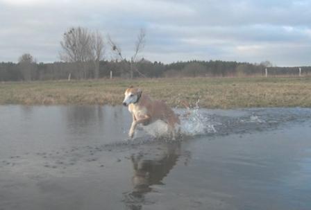 Der Schnee schmilzt und bei Daisy (Nähe Berlin) ist er schon großen "Pfützen" gewichen, in denen man herrlich herumtoben kann.
