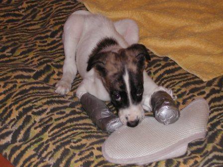 Als der Kleine bei uns ankam, war bereits klar, er braucht sehr viel Pflege. Laut Stuttgarter TA sollte er geschont werden, am besten immer getragen werden, sich nicht bewegen. Der Bodenseedoc meinte, Stützverbände und laufen lassen.