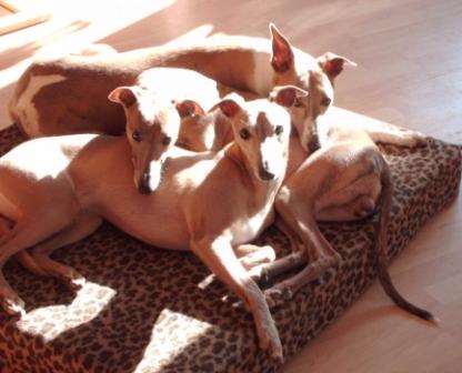 Neues von unseren Whippetbrüdern Stan und Olli, sie können außer ziemlich fotogen in der Sonne lümmeln auch mit Katze/n leben;-)))