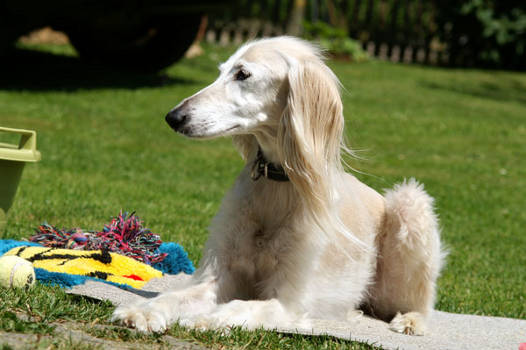 Unsere Saluki-Hündin Dana ist umgezogen... und sie sieht doch schon recht begeistert aus. Kein Wunder, denn sie zog auch zu unserem Ebony und dessen Saluki-Freund! Wir wünschen Dana und ihrer Familie alles Gute!