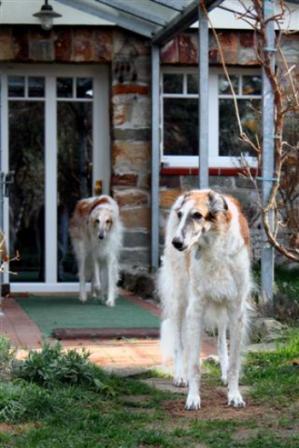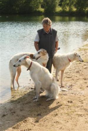 Inge mit Dobby und Danilo, vorne Marions Katinka