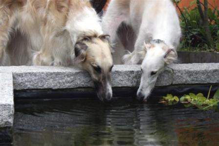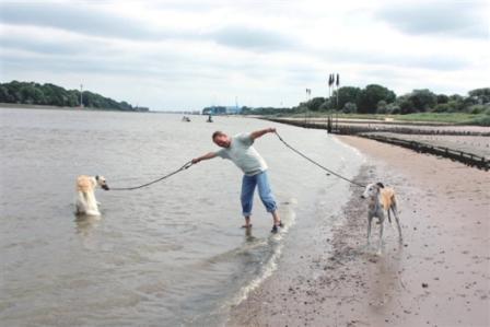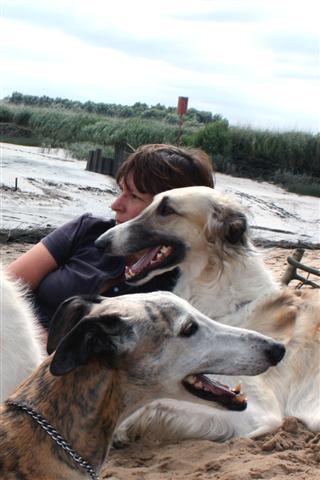 Ein Schwung aktueller Fotos aus Ostfriesland: Greyhound Gigi und den beiden Barsois Katinka und Cao geht es prima.