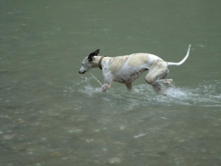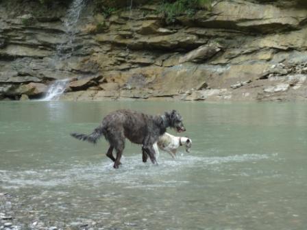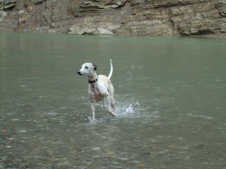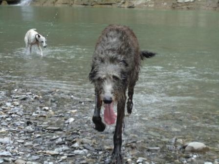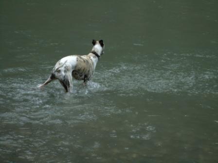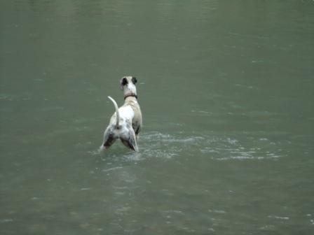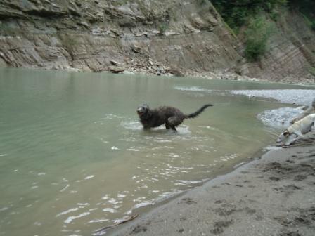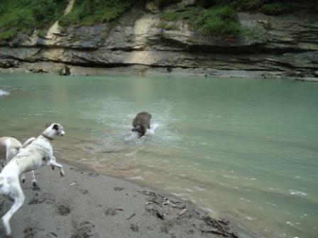 ... hier seht ihr mich mit meinen Freunden, der Große kann es wieder mal gar nicht erwarten und muß schon vor mir ins Wasser, von Lady´s first hat er wohl noch nichts gehört...