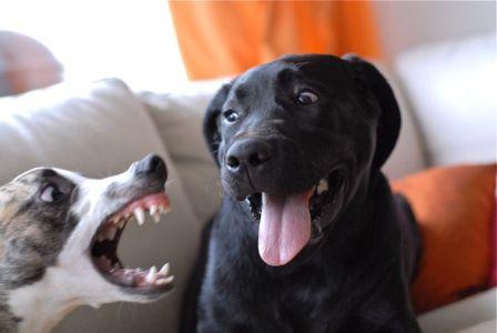 Hier sieht man den kleinen Barnaby mit gerade mal 6 Monaten und seinen gleichaltrigen Nachbarsfreund, einen Labrador.