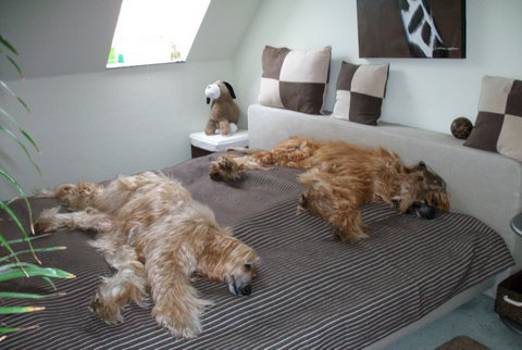 Dann erreicht uns noch eine Beschwerde einer unserer Afghanen-Besitzerinnen (Brigitte). Sie habe sich ein bißchen im Bett ausruhen wollen und habe das hier vorgefunden... "Was haben Sie mir da bloß vermittelt?"