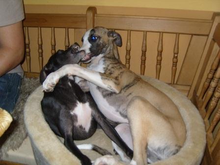 Zumindest brauchen sie einen kuschelfähigen Windhund, es muß nicht unbedingt ein Whippie sein, wie man sieht...