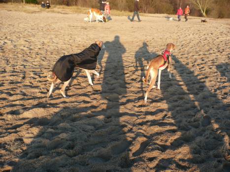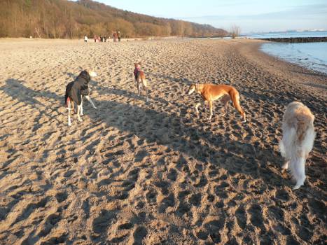 Seit Ende der zweiten Woche läuft sie ohne Leine. Sie kommt voller Freude, wenn ich sie rufe und lässt sich sogar vom Krähenjagen abrufen. Sie kann mit jedem Hund, weiß sich gegen Rüpel souverän zu behaupten, ist voller Neugier und auch gegenüber fremden Menschen aufgeschlossen. Wenn sie nicht bedrängt wird, beschnuppert sie sie und ein Leckerchen ist immer willkommen. Sie ist ein fröhlicher Sausewind, mit viel Temperament und Tempo unterwegs, voller Forscherdrang und Kontaktfreude.